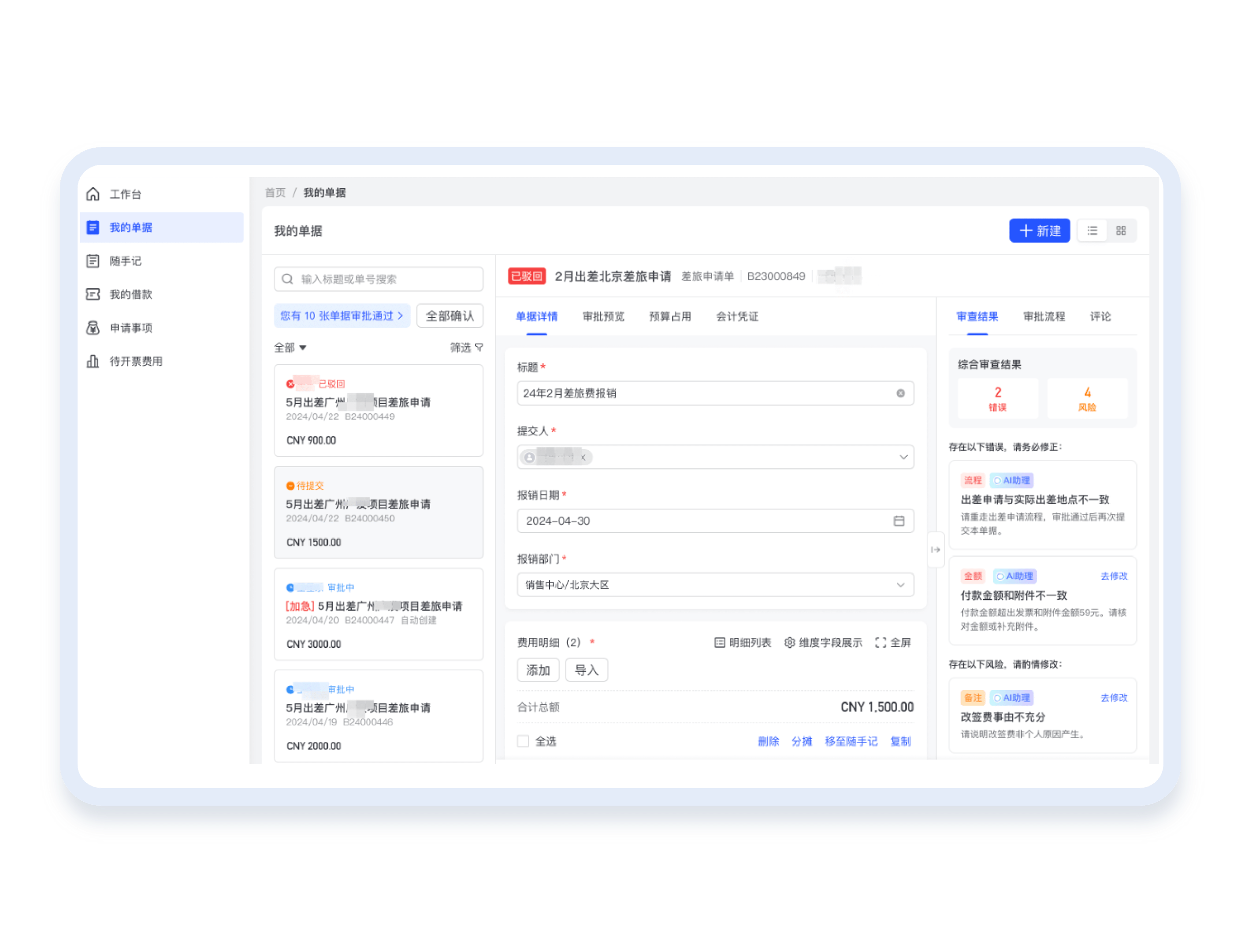 • 附赠决策建议,可自主设置审批规则,自动驳回问题单据,或仅呈现风险信息供人工决策参考