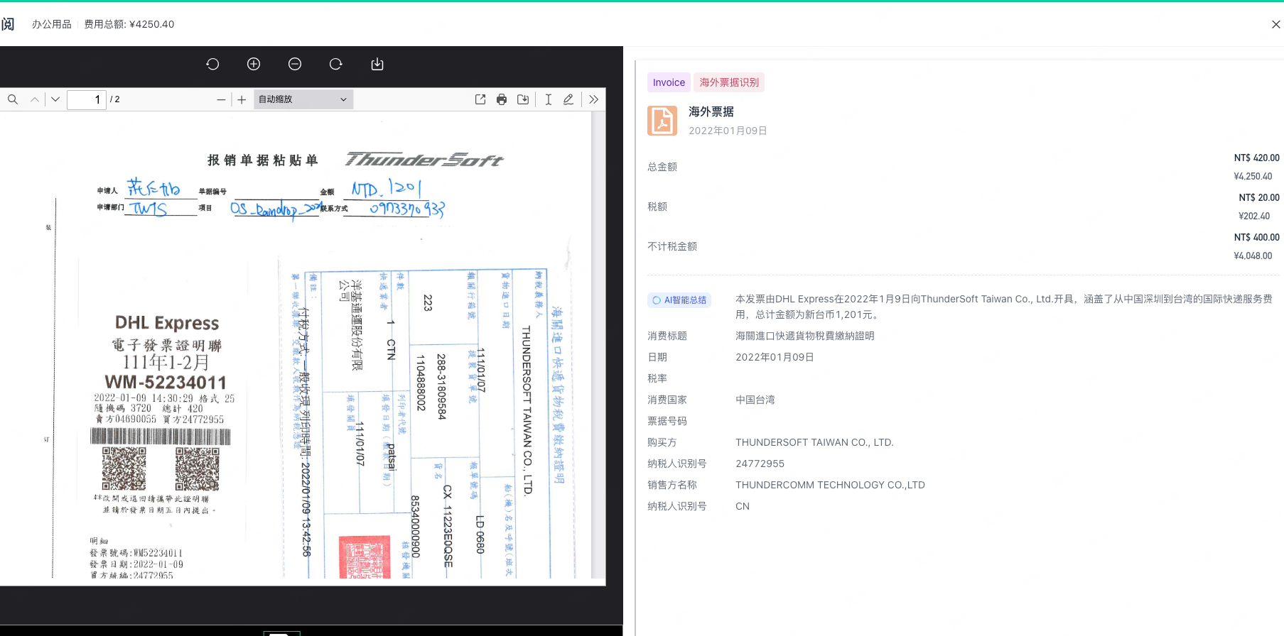 • 系统支持同时上传多张不同国家的票据,自动完成批量识别与处理